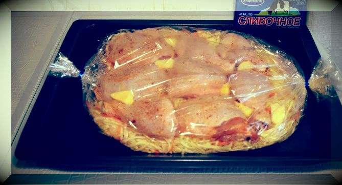 Dietinis patiekalas iš kopūstų su vištiena rankovėje