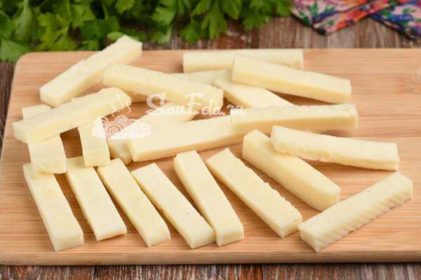 Supjaustome sūrį gabalėliais (20 vnt).